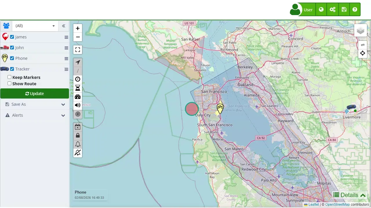 - Track Phones: Allows the user to see the location and route of all assigned phones within the platform.